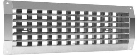 Rohrgitter verzinkt für Zuluft und Abluft, mit Rahmen und einstellbaren Strahllenklamellen aus profiliertem, verzinkten Stahl. SR mit waagerechten Frontlamellen. Rückseitig mit Schlitzschieber.