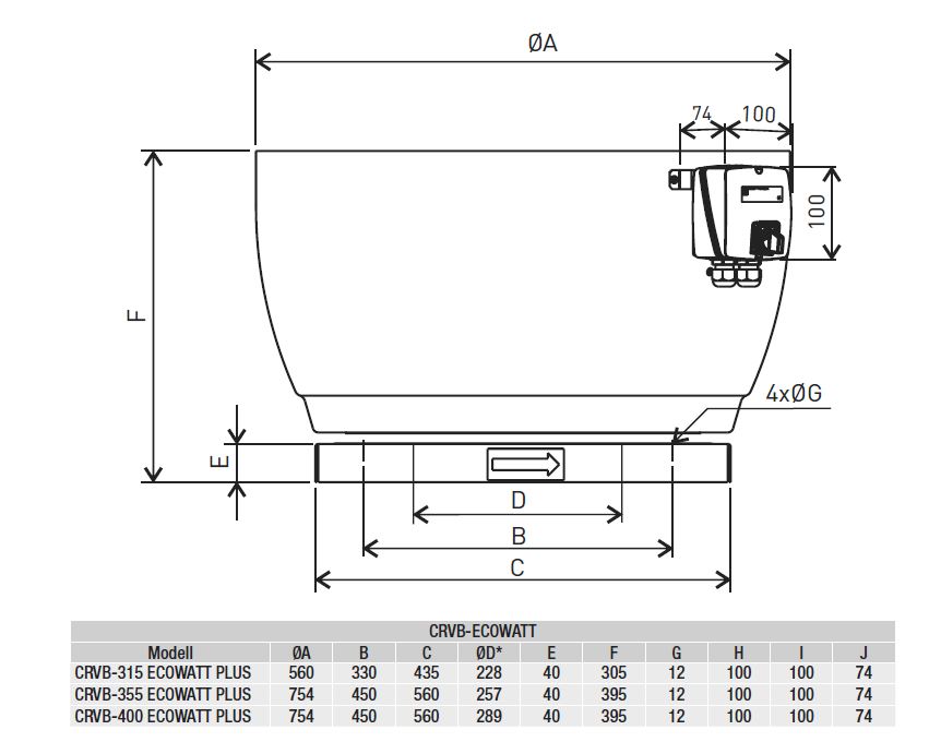 -Vertikal ausblasend -Max. zulässige Temperatur des Fördermediums 70GradC im Dauerbetrieb -Quadratische Grundplatte mit angeformter Einströmdüse aus Stahlblech, verzinkt -Haube aus Aluminium, seewasserbeständig -Hochleistungs-Radiallaufrad mit rückwärts gekrümmten Schaufeln aus Stahlblech, verzinkt -Statisch und dynamisch ausgewuchtet nach ISO 1940 -Revisionsschalter werkseitig montiert und verdrahtet -Aussenläufermotor aus Aluminiumspritzguss, 2-polig -Schutzart IP 54 -Wärmeklasse F -Motorbemessung Dauerbetrieb S1 -Geschlossene Kugellager - wartungsfrei -Transformatorisch oder elektronisch drehzahlsteuerbar -Mit Thermokontakten ausgestattet,manuelle Rückstellung gemäß EN 60335-2-80