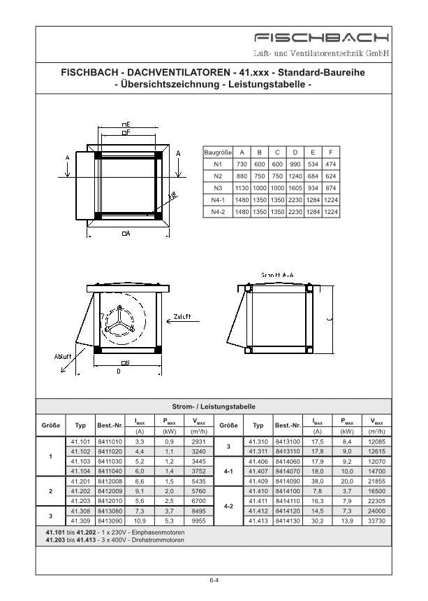 Die Geräte 41.101 bis 41.409 sind mit FISCHBACH-COMPACT-GEBLÄSE – D/DS-Baureihe – mit vorwärts gekrümmten Schaufeln, doppelseitig saugend, ausgerüstet.