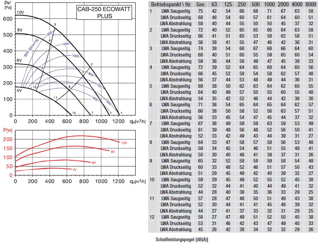 - Schalldruckpegel LPA (1,5m): 42 dB(A) Abstrahlung
